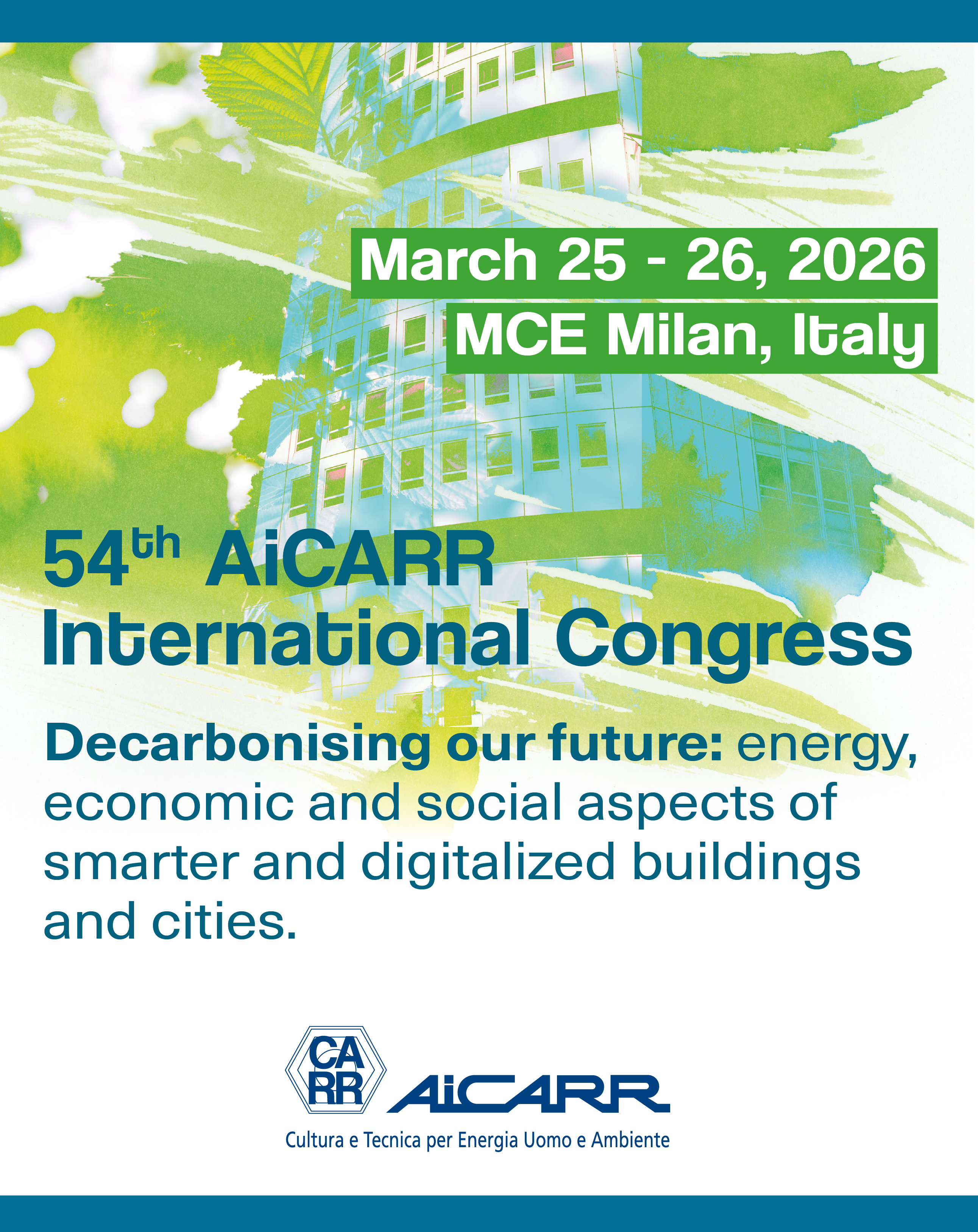 The transition to more efficient buildings and cities with the integration of renewable sources and heat reuse represents a decisive step towards a greener and more resilient digital economy. These are the main topics of the 54th AiCARR International Congress that will be held from 25th to 26th March 2026 in Milan.